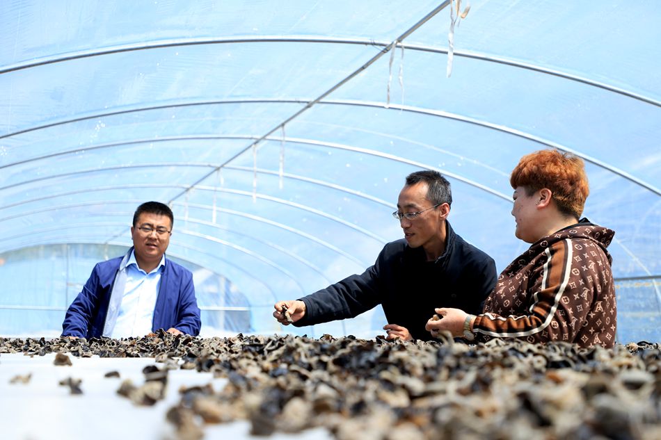 “我們基地2月份進菌棒65萬棒,目前已經(jīng)采摘了頭茬和二茬木耳,之后根據(jù)氣候和木耳長勢,還可以采摘5~6茬,預計產(chǎn)出木耳6萬多斤,產(chǎn)值能達到260萬元。木耳經(jīng)過晾曬后,東北的客商過來收購。”合作社負責人趙鳳芹笑著說,“基地用工主要是本地村民,按天結(jié)工錢,女工80元,男工120元!弊詮挠辛四径a(chǎn)業(yè),村里群眾不用外出打工,在家門口就能掙到錢,日子越過越好。