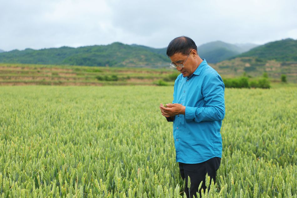 在馬溝村蘭天36號小麥良種種植田里,甘肅省農(nóng)科院小麥研究所清水縣小麥試驗站站長魯清林正在查看小麥長勢!半m然今年經(jīng)歷了比較嚴(yán)重的凍害,但是蘭天系列小麥依舊長勢良好,從它的成穗數(shù)量、抗病性方面都表現(xiàn)不錯!