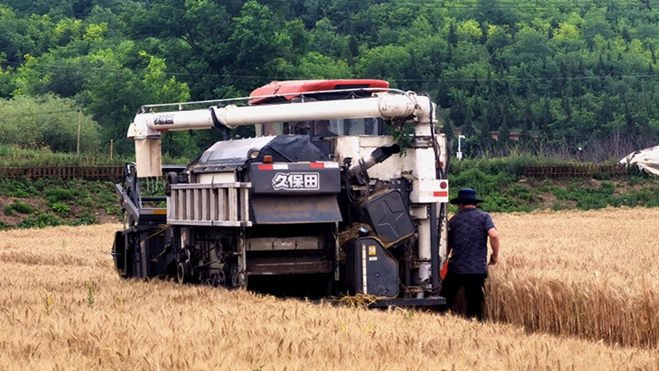 走進(jìn)田間地頭,麥穗顆粒飽滿,遠(yuǎn)遠(yuǎn)望去,眼前是一望無際的金色麥浪。小麥?zhǔn)崭顧C(jī)在田間地頭來回馳騁,機(jī)聲隆隆。