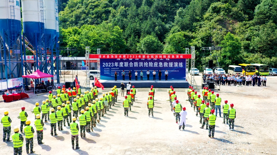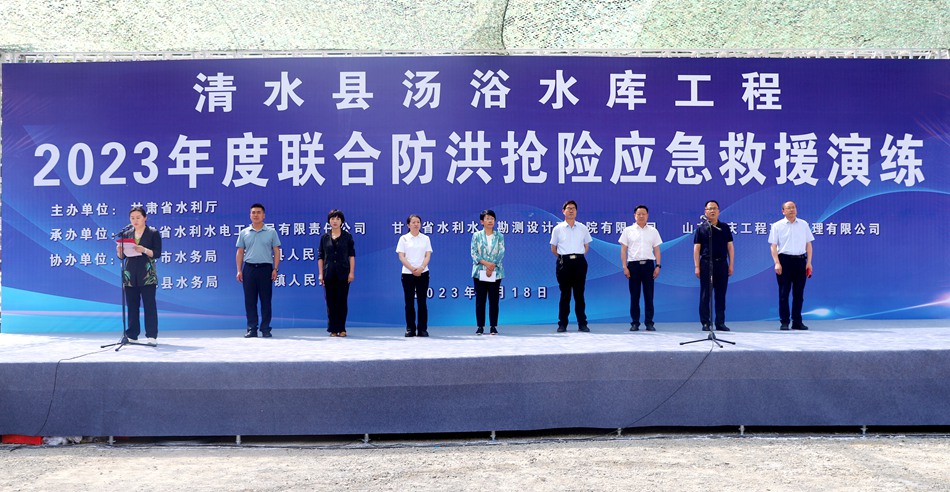 省水利廳黨組成員、副廳長程江芬出席活動并講話,清水縣委副書記、縣長李菊霞致辭,省水電工程局公司黨委副書記、總經(jīng)理曹利俊對演練活動做了總結(jié)。
