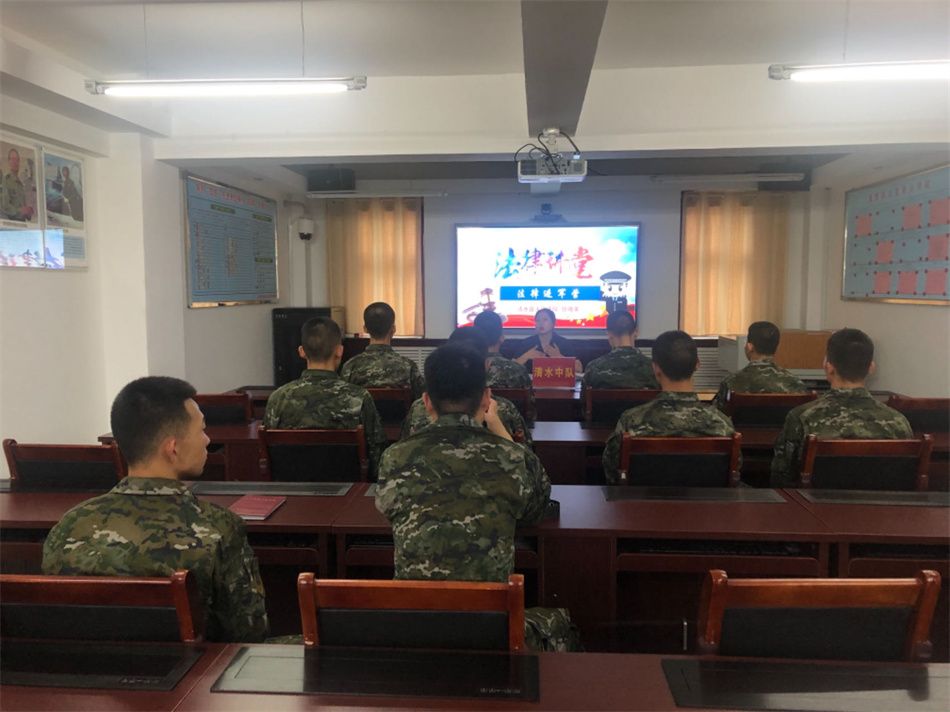 在“八一”建軍節(jié)來臨之際,為進(jìn)一步密切軍民感情,增強(qiáng)武警官兵法律意識和法治觀念,切實(shí)維護(hù)軍人合法權(quán)益。近日,清水法院組織干警前往清水縣武警中隊(duì)開展“送法進(jìn)軍營”普法宣傳活動(dòng),為武警官兵送去法律關(guān)懷,提供司法服務(wù)。