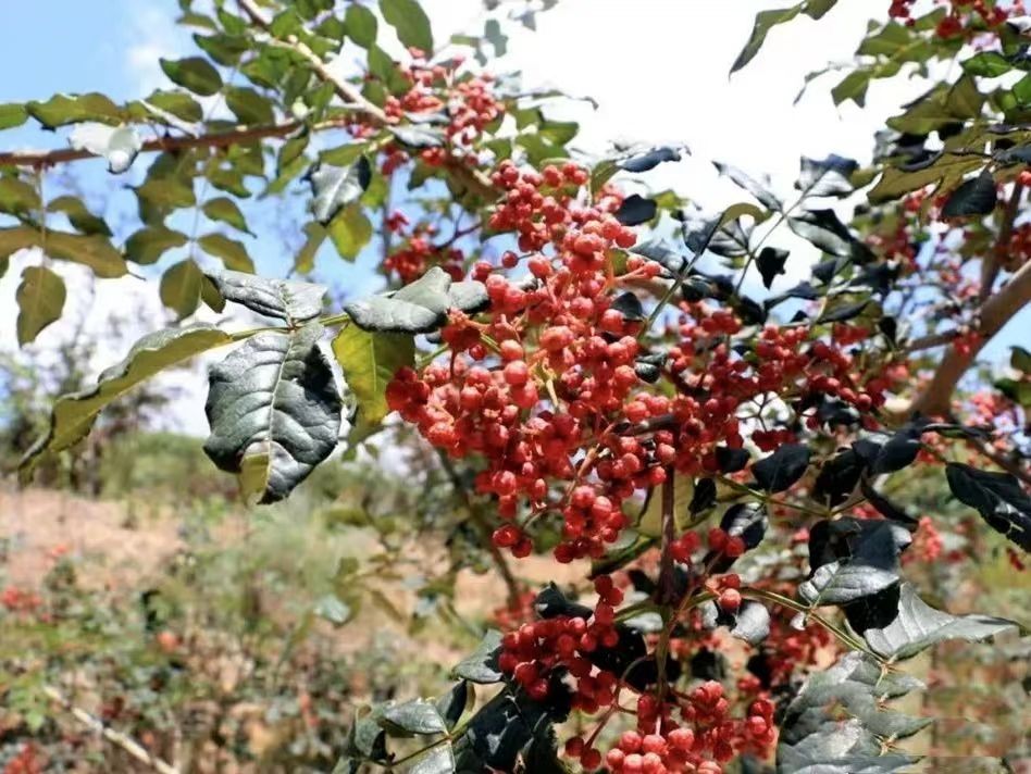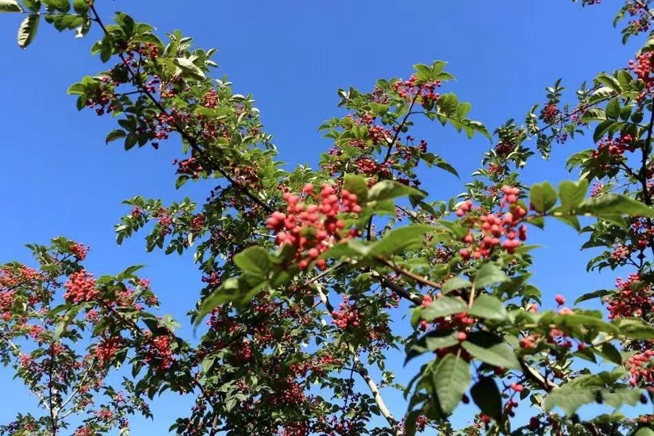 八月時(shí)節(jié),走進(jìn)金集鎮(zhèn)花椒種植基地,千畝花椒迎來采摘季,一排排花椒樹郁郁蔥蔥,綿延在山丘、耕地之間,紅色的花椒綴滿枝頭,微風(fēng)拂過,椒香撲面而來,呈現(xiàn)出一派喜人的豐收景象。