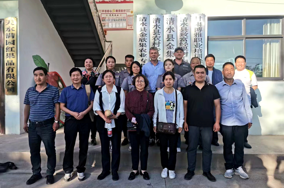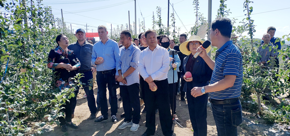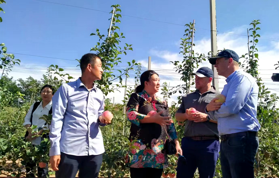 在金集鎮(zhèn)蘋果矮砧密植示范基地,來自德國阿格福萊農(nóng)林環(huán)境生物技術(shù)股份有限公司首席科學(xué)家托馬斯博士、南非尼勒思科882有限責(zé)任公司首席科學(xué)家瑞恩博士和天水市果樹研究所的教授現(xiàn)場根據(jù)果樹生長情況,分析需肥需水情況,對(duì)蘋果病蟲害防控及管護(hù)進(jìn)行現(xiàn)場指導(dǎo),并針對(duì)蘋果栽植后期管理、施肥等工作有針對(duì)性地提出了意見和建議。