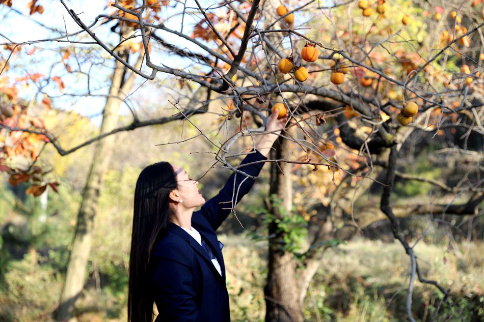 10月28日,記者來到柿子園,一個(gè)個(gè)橘紅色的柿子猶如一盞盞紅燈籠掛滿枝頭,為深秋的村莊增添了一道亮麗的風(fēng)景。每天慕名來拍照參觀的人數(shù)高達(dá)上百人,游客們?nèi)宄扇旱脑谑磷訄@里拍照打卡,沐浴在秋日陽光下,祈愿著“柿柿”如意、心想“柿”成。