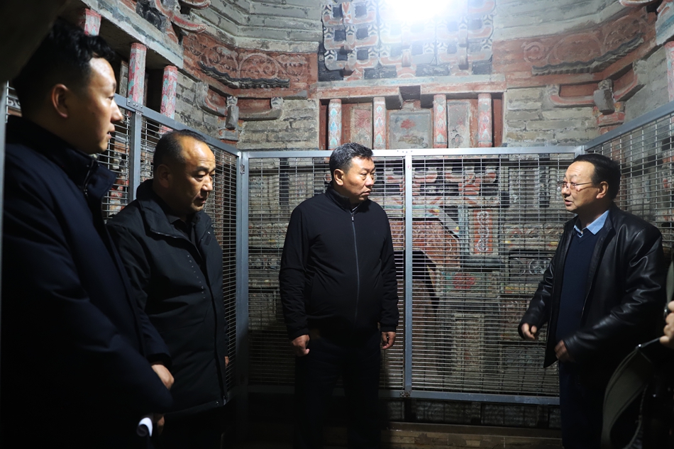 在宋墓群墓室里,馬越垠認(rèn)真了解了文物保護(hù)管理情況,聽取了宋墓群等重點(diǎn)文物保護(hù)修繕工作情況匯報,對文物保護(hù)、管理維護(hù)、合理利用等工作提出指導(dǎo)意見。