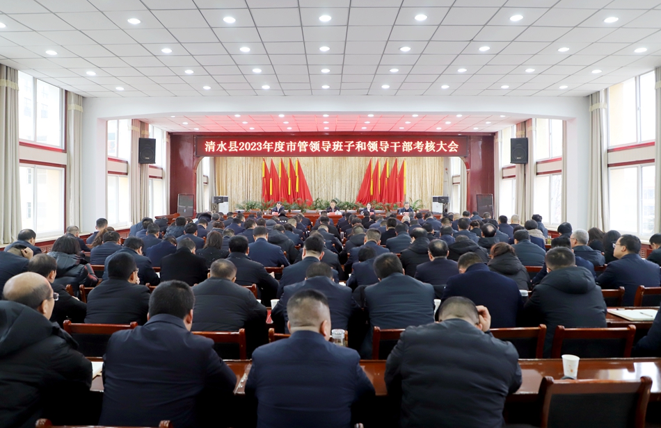 1月15日,清水縣2023年度市管領(lǐng)導(dǎo)班子和領(lǐng)導(dǎo)干部考核大會(huì)召開。市委考核組組長、市政府辦公室二級(jí)巡視員左紹君帶領(lǐng)考核組對清水縣市管領(lǐng)導(dǎo)班子和領(lǐng)導(dǎo)干部進(jìn)行考核?h委書記李菊霞主持會(huì)議并代表縣委班子作工作總結(jié)?h四大組織在家領(lǐng)導(dǎo)及其他縣級(jí)干部,縣直各部門、各單位主要負(fù)責(zé)人,18鄉(xiāng)鎮(zhèn)黨委、政府主要負(fù)責(zé)人參加會(huì)議。