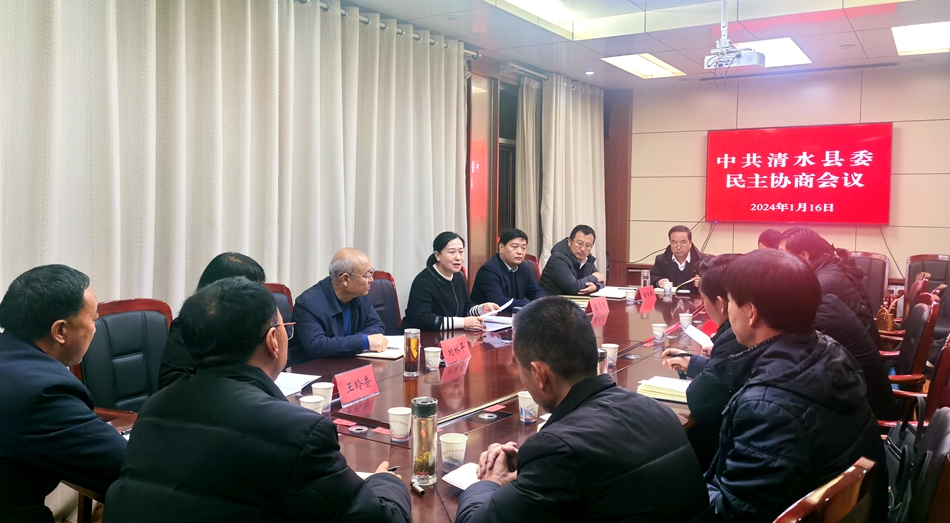 1月16日晚,清水縣委常委、統(tǒng)戰(zhàn)部部長、縣政協(xié)黨組副書記蘇紅娟主持召開中共清水縣委民主協(xié)商會議。