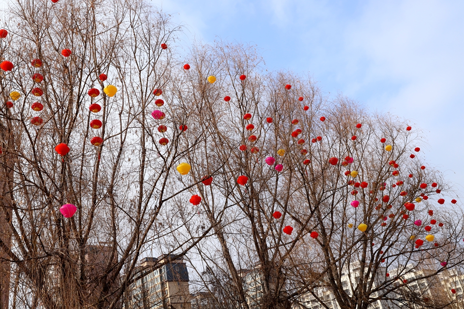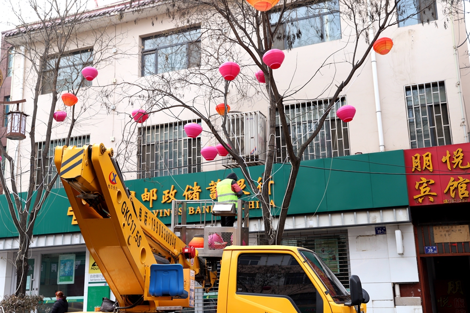 記者來到中山路,可以看到亮化工人們忙碌的身影,他們分工明確,各司其職,有的布置著行道樹上的燈網(wǎng),有的舉起桿子懸掛燈飾。在南環(huán)路、充國廣場、三馬路,放眼望去,一顆顆桃花樹彌漫著春天的氣息,一串串鮮艷的小燈籠高高掛起,處處洋溢著喜慶的氛圍,讓節(jié)日的氛圍更加濃厚。