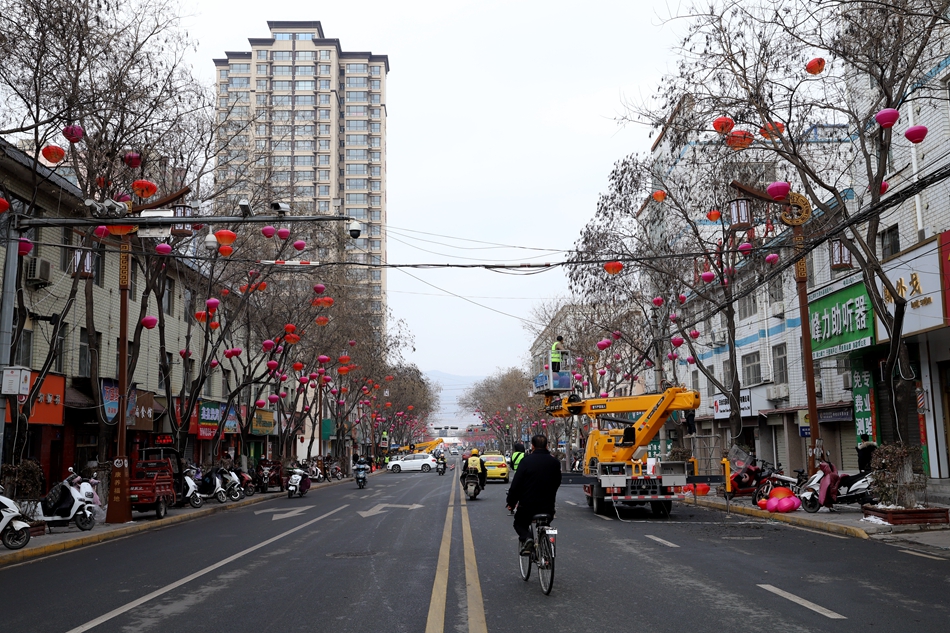除夕將至,年味漸濃。在我的身后,工人師傅們正在進行春節(jié)氛圍亮化工程的安裝,多個路段換上新裝,氛圍布置以各色彩燈和燈籠為主,喜慶祥和的節(jié)日氛圍貫穿始終,呈現(xiàn)出日夜皆春色的整體效果,讓全縣人民感受到濃濃的年味及節(jié)日溫暖。