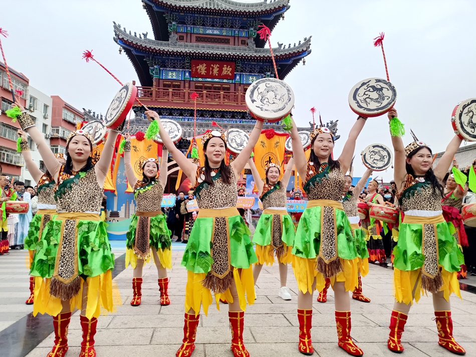 軒轅大鼓敲起來,軒轅旌旗搖起來,響亮銅镲擊起來,清水兒女舞起來……
