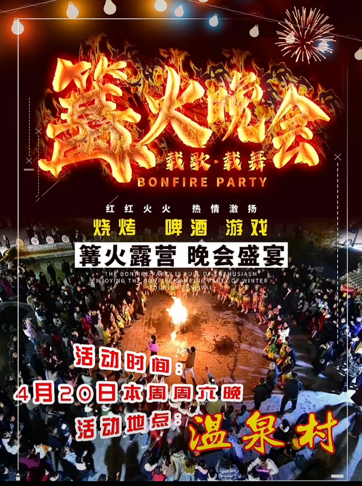 【海報】4月20日晚八點 溫泉村篝火露營 邀您赴晚會盛宴