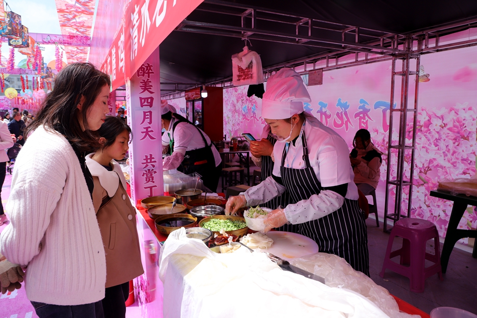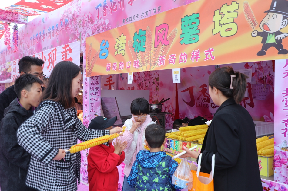 “好多游客喜歡吃我們的油餅,這幾天銷量特別好。這次的丁香文化旅游活動聚攏了人氣,特色小吃展也辦得很成功。”清水特色菜攤位負(fù)責(zé)人李鑫澤說。