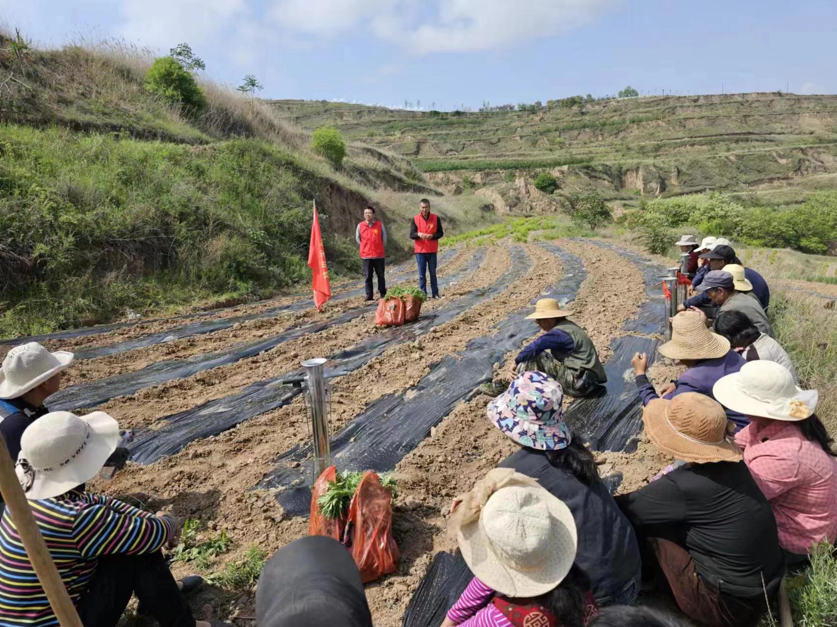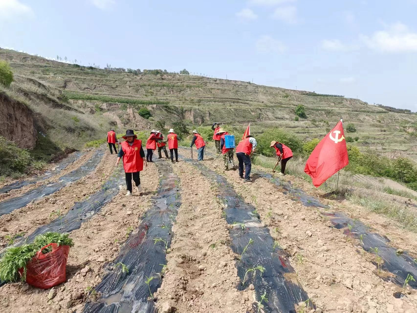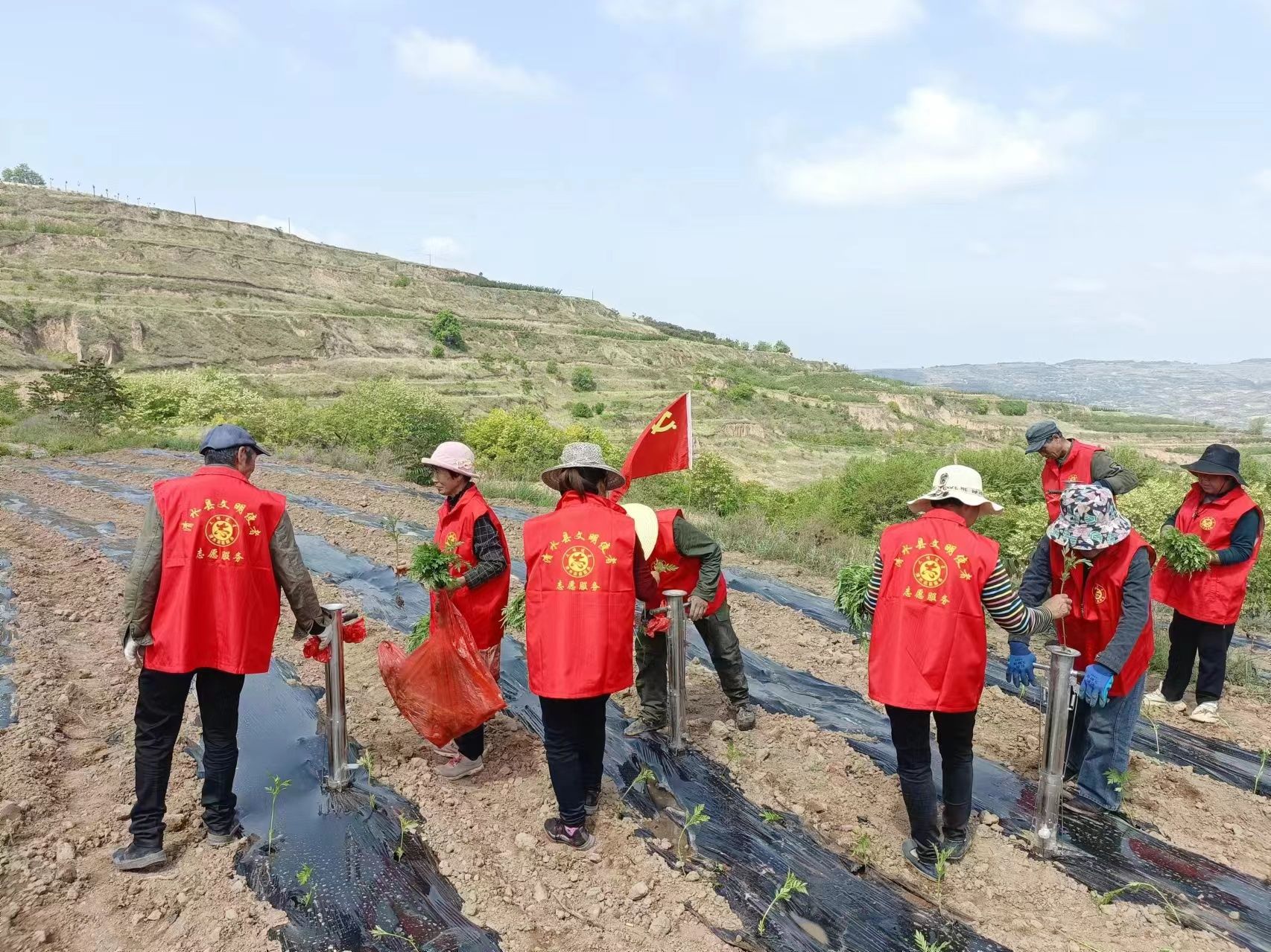 隨后,村黨支部組織黨員干部、志愿者們參與萬壽菊移栽種植工作,大家井然有序地栽植、澆水、覆土,田間地頭呈現(xiàn)出一派火熱的勞作畫面。