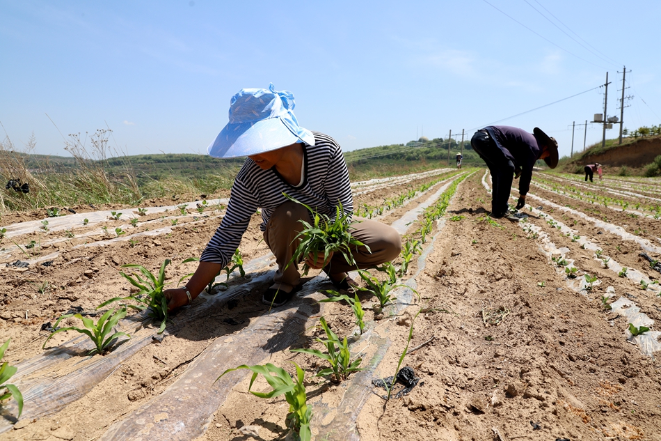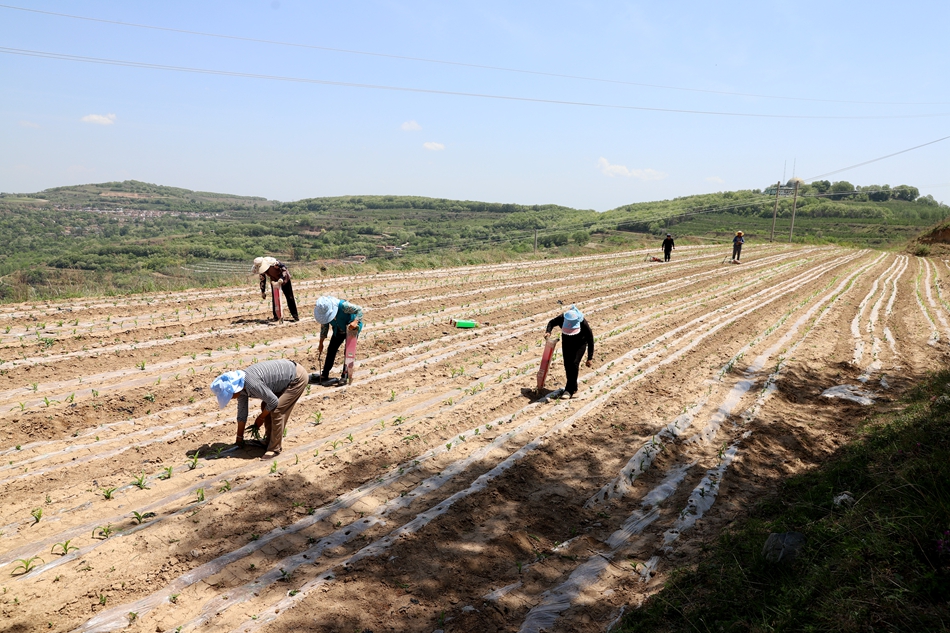 眼下,正是大豆玉米種植管理的好時節(jié),記者走進金集鎮(zhèn)大豆玉米帶狀復合種植示范點,遠遠望去漫山遍野的玉米苗和大豆苗長勢良好,出土約10厘米,村民們正在地里忙著鋤草、玉米勻苗、補種之前因機播漏播的大豆種子,田地里繪出了一幅生機勃勃的田園豐景畫卷。