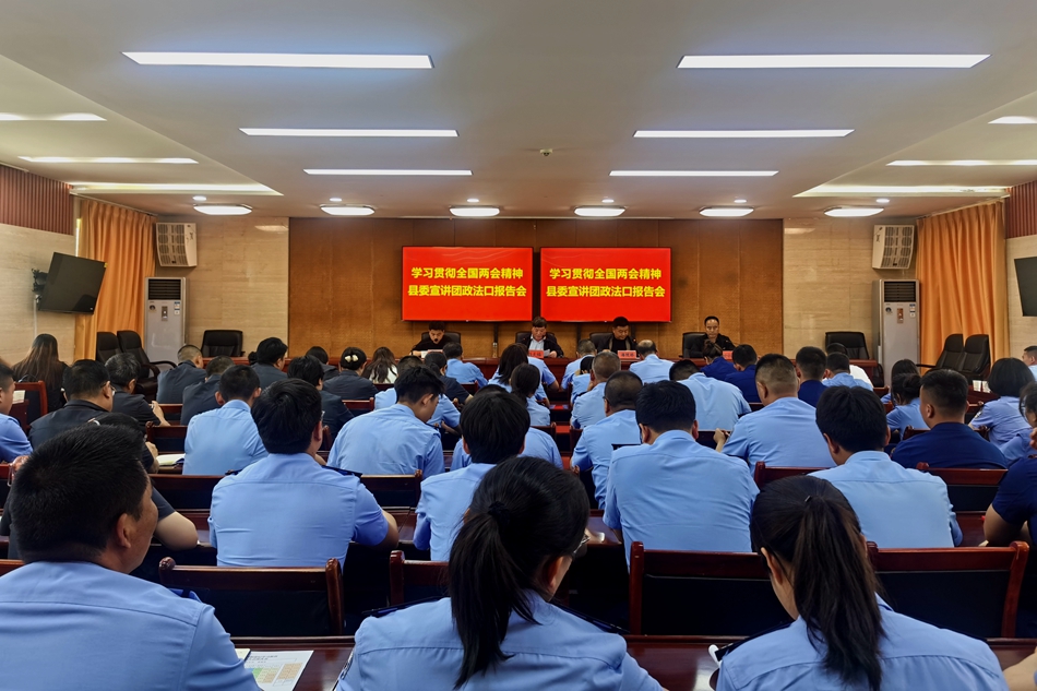 5月20日下午,學(xué)習(xí)貫徹全國兩會精神和黨紀(jì)學(xué)習(xí)教育縣委宣講團(tuán)政法口報(bào)告會舉行?h委政法委、縣公安局、縣檢察院、縣法院、縣司法局、縣民政局、縣消防隊(duì)干警共計(jì)80余人參加報(bào)告會。