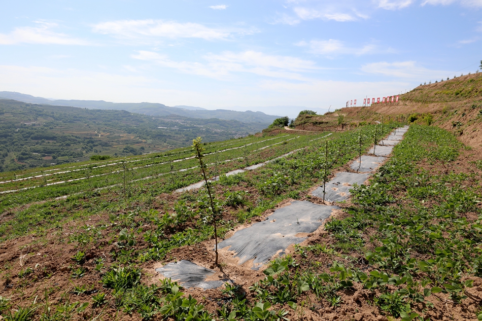 豐望鄉(xiāng)徐山村老舊果園改造點(diǎn)負(fù)責(zé)人趙永紅說,“果園建成面積350畝,品種有愛妃、馬斯特紅蛇、秦脆等幾個(gè)品種,套種了黃豆,果樹長得特別好,現(xiàn)在正在除草,三年可以掛果,后期收益我相信也很好!