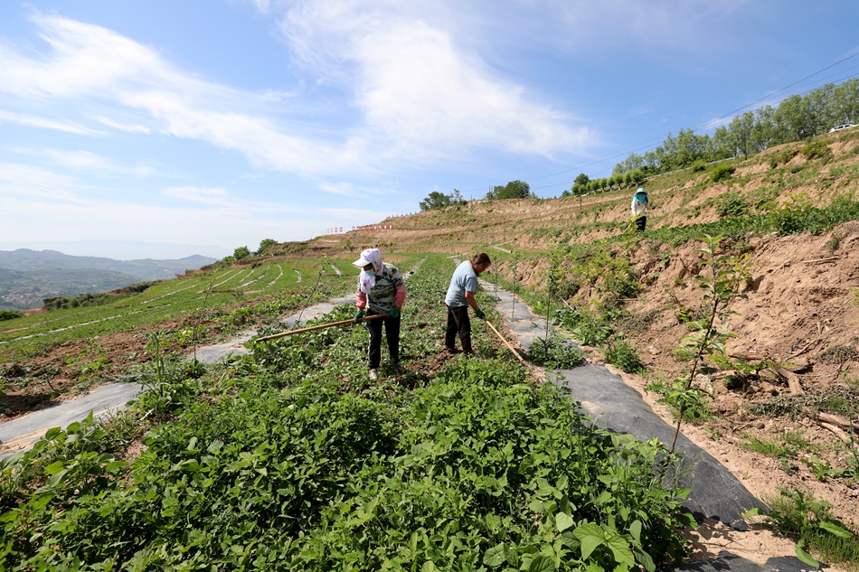 仲夏時(shí)節(jié),萬物并秀。來到清水縣豐望鄉(xiāng)老舊果園改造點(diǎn),今年新栽植的果苗正茁壯成長,樹下套種的黃豆生機(jī)勃勃,工人們正忙著除草管護(hù),一派忙碌景象。