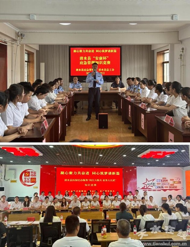 縣總工會聯(lián)合縣應急管理局舉辦了慶祝建黨103周年“凝心聚力共奮進,同心筑夢譜新篇”全縣“安康杯”應急管理知識競賽,黨員干部積極參與,有效達到了“以賽促學、樹牢安全”的目的,進一步提高了廣大干部職工的安全生產意識以及應對、防范和遏制突發(fā)安全生產事故的能力?h醫(yī)保局、縣婦聯(lián)、縣文明實踐辦聯(lián)合舉辦慶祝建黨103周年“凝心聚力共奮進、同心筑夢譜新篇”清水縣醫(yī)保經(jīng)辦系統(tǒng)“崗位大練兵、業(yè)務大比武”知識競賽。比賽現(xiàn)場緊張熱烈又精彩紛呈,展示出選手們扎實的學習效果和深厚的理論功底,進一步增強醫(yī)保系統(tǒng)干部理論素養(yǎng),提升服務能力,營造醫(yī)保政策宣傳的濃厚氛圍。