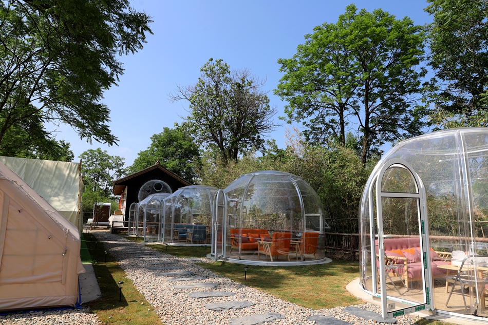北山小院旁的“趣野”城市露營基地,有露營帳篷、星空屋、天幕電影等設(shè)施,主打新疆烤肉、韓式烤肉等特色餐飲服務(wù),是一處親子、休閑、娛樂、餐飲為一體的城市露營基地。
