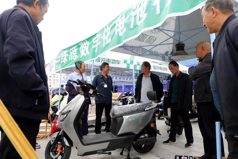 來到清水縣軒轅廣場,縣內(nèi)十余家電動車、家電家裝等門店設(shè)立了展示專區(qū),進行現(xiàn)場宣傳銷售,懸掛的“以舊換新,政府補貼”橫幅十分醒目,吸引不少市民前來咨詢購買。