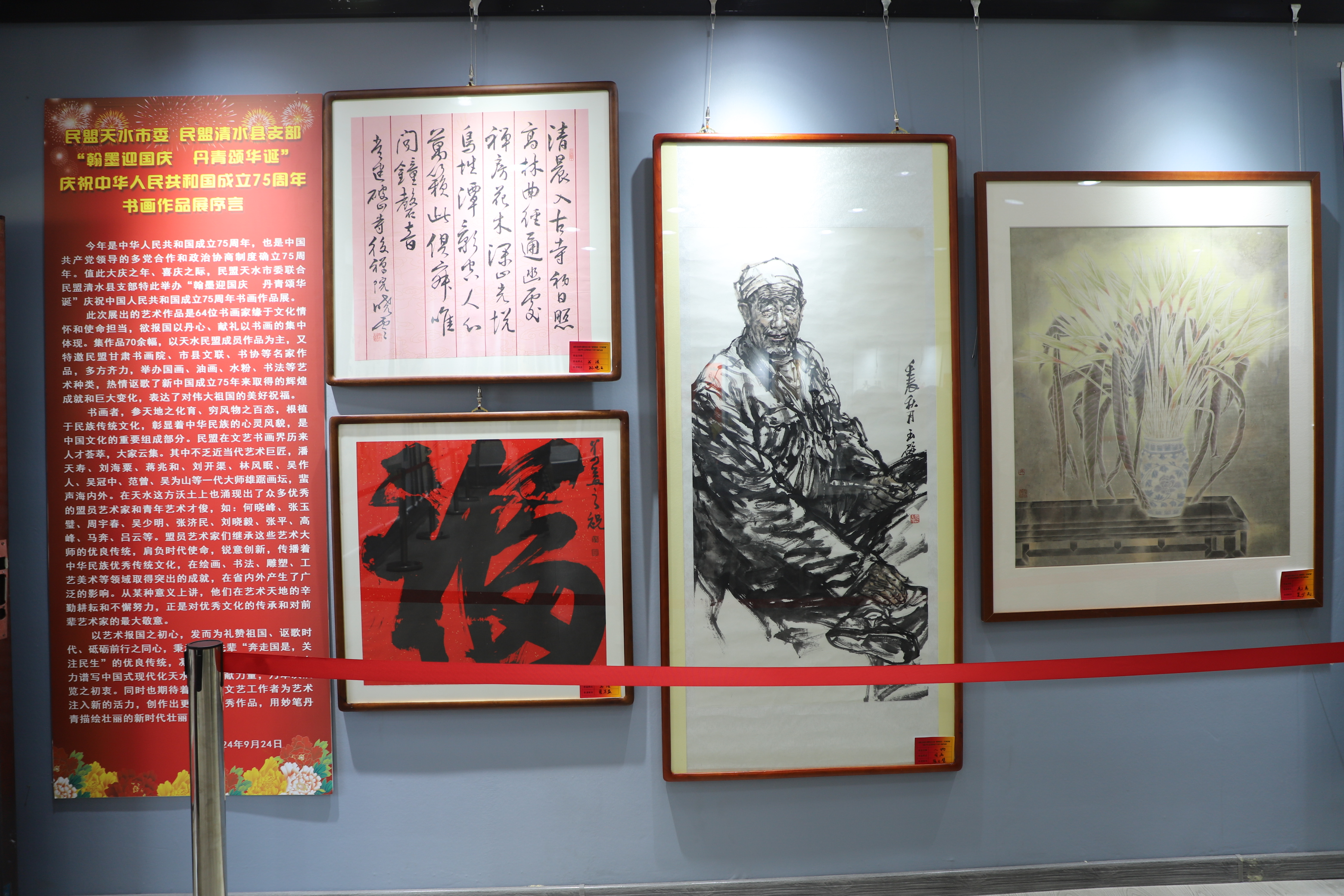 9月24日,由民盟天水市委、民盟清水縣支部共同舉辦“翰墨迎國慶丹青頌華誕”慶祝中華人民共和國成立75周年書畫作品展在清水縣文化館開展。