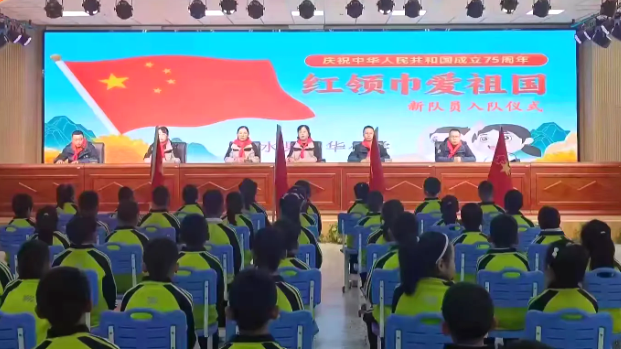 150名新入隊少先隊員佩戴上鮮艷的紅領(lǐng)巾