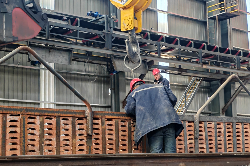 作為項目建設負責人,梁彥紅每天都要穿梭于施工現場,忙碌在施工程序、人員管理、安裝驗收等多個環(huán)節(jié),進行全流程的監(jiān)督管理,全力保證設備安裝調試高標準、高質量完成!2#冶煉生產線目前保溫料已經裝完,我們兩臺行車在裝爐,工人們正在緊張有序施工,混料系統正在調試設備,目前已經調試完成!