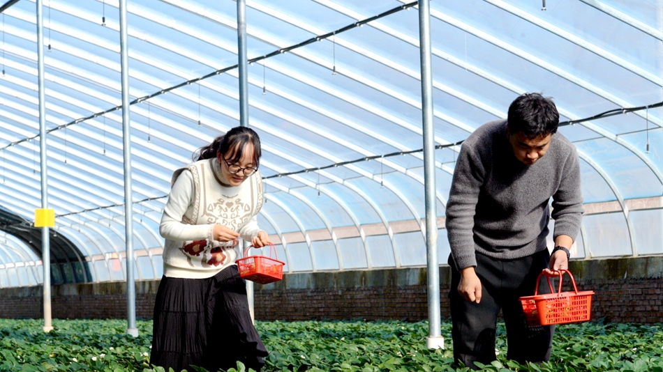 與此同時,姚黃村草莓種植大戶景愛林的冬暖室大棚,一簇簇翠綠的植株間,一顆顆草莓看起來更加緋紅鮮亮。不少游客穿梭在草莓行列之間,沉浸在溫暖“莓”好的午后時光里,盡情享受著采摘草莓的樂趣。