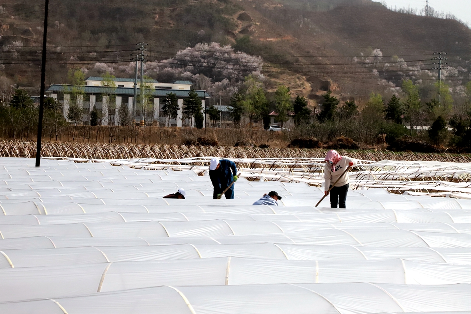 暮春時節(jié)的清水縣永清鎮(zhèn)馬溝村,千畝半夏種植農(nóng)忙場景鋪展鄉(xiāng)野。道路兩旁的半夏種植基地,土地十分平整,一個個小拱棚整齊排列。穿行在標準化種植示范帶,規(guī)整的田壟間小拱棚矩陣整齊排列,智能化滴灌管網(wǎng)在陽光下折射科技光芒。藥農(nóng)或手持霧化設備噴灑農(nóng)藥,或三五協(xié)作鋪設農(nóng)膜,微風陣陣翻涌的農(nóng)膜起伏流轉,與遠處青黛色的山巒共同勾勒出現(xiàn)代農(nóng)業(yè)的美麗畫卷。今年,永清鎮(zhèn)各村通過“企業(yè)+合作社+農(nóng)戶”模式,種植半夏3200畝,讓“土特產(chǎn)”真正成為鄉(xiāng)村振興的“金鑰匙”。