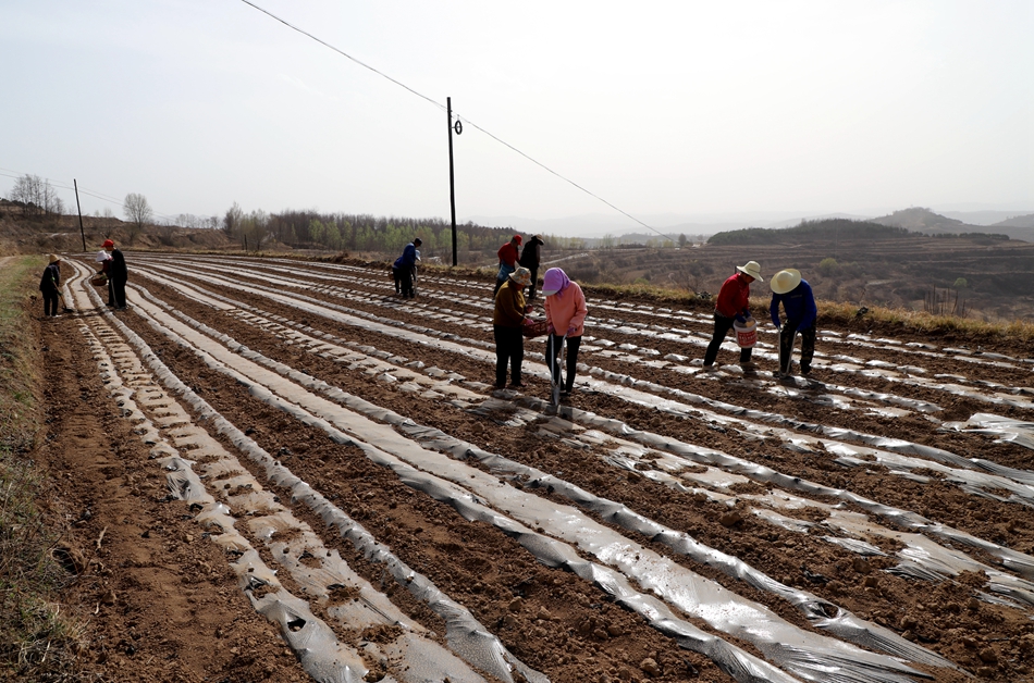 在永清鎮(zhèn)常楊村的山區(qū),一片連著一片的中藥材種植為這片土地帶來了新的生機,村民們正搶抓農(nóng)時栽種道地款冬花,兩人成組、分工明確,手法熟練地進行打眼、放苗、覆土,忙得不亦樂乎。