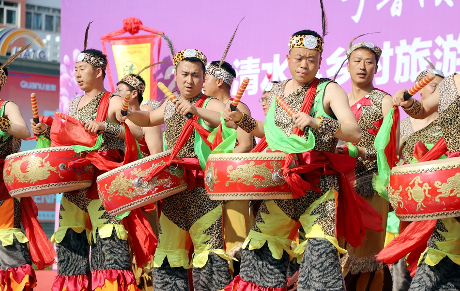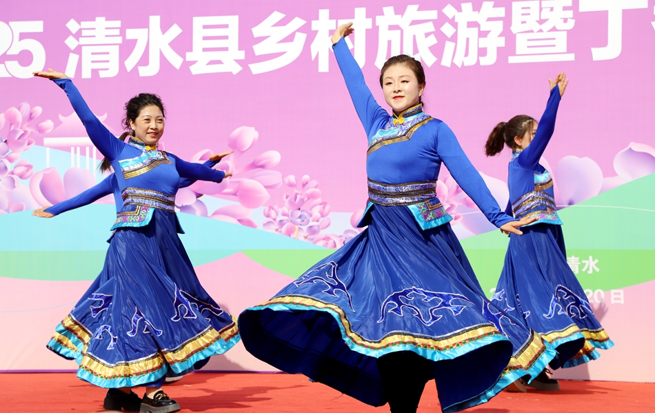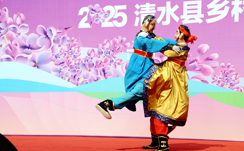 活動(dòng)在雄渾激昂的《軒轅鼓舞》中拉開序幕,鏗鏘的鼓點(diǎn)奏響了清水作為“軒轅故里”的厚重文脈。隨后,舞蹈《錦繡山河》以靈動(dòng)舞姿勾勒出清水兩山青翠、碧水中流的詩(shī)意畫卷,歌曲《載歌載舞》則以歡快旋律傳遞了當(dāng)?shù)厝嗣竦臒崆楹每。此外,非物質(zhì)文化遺產(chǎn)節(jié)目《木人摔跤》和婉轉(zhuǎn)悠揚(yáng)的清水小曲《繡荷包》相繼登場(chǎng),展現(xiàn)了地方文化的獨(dú)特魅力。活動(dòng)最后,清水縣縣歌《來(lái)日方長(zhǎng)》與《我家清水門前流》深情唱響,將“山水相依、人文相融”的清水風(fēng)貌娓娓道來(lái)。