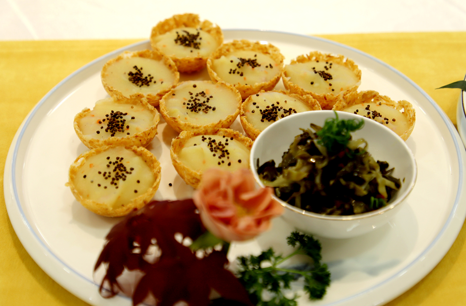 “碼頭故事參賽菜品是清水土豆泥,主要用的食材是黃心土豆,酸菜,荏籽,佐料有牛奶、黃油、鹽,做出來口味細(xì)膩香甜、口感豐富,土豆泥富含蛋白質(zhì)、維生素C、鉀等營養(yǎng)元素,具有促進(jìn)消化、增強(qiáng)體質(zhì)等功效。”碼頭故事楊芳說。
