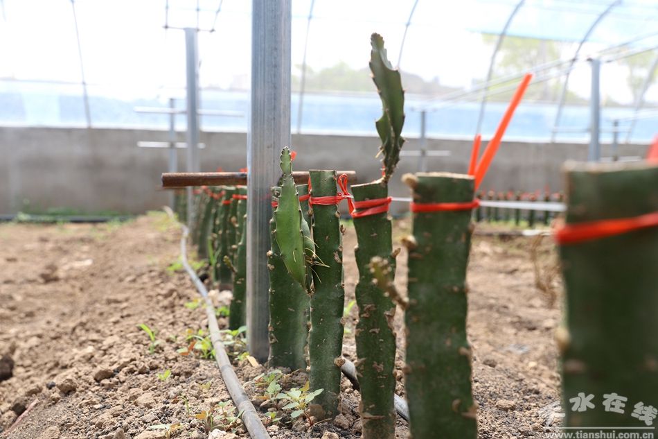 “這是今年從陜西楊凌引進(jìn)的火龍果種植技術(shù),現(xiàn)在是第一年種植,種了2畝3000多苗,目前有70%的火龍果苗已經(jīng)出芽,明年5月開花、7月結(jié)果,預(yù)計(jì)畝產(chǎn)能達(dá)到5000斤,收益能達(dá)到10萬元!卑遵勬(zhèn)火龍果種植戶王志強(qiáng)說。