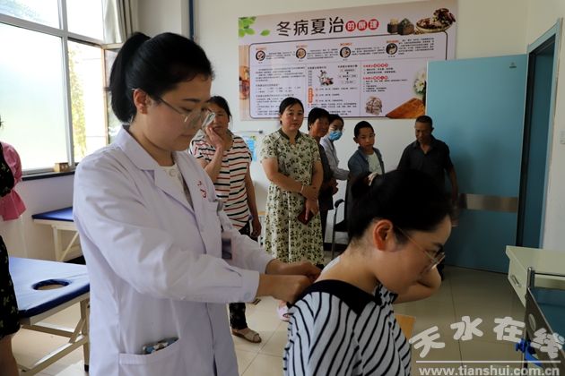 “縣人民醫(yī)院的三伏貼從夏至就開始約貼了,20號(hào)頭伏是第一帖,中伏第二貼,末伏是第三貼,隔十天還有一個(gè)加強(qiáng)貼。三伏貼主要是用于呼吸道氣管炎、消化道胃炎、婦科痛經(jīng)、風(fēng)濕關(guān)節(jié)炎等疾病,貼敷期間注意不要過(guò)量運(yùn)動(dòng),防止脫落,4小時(shí)后就可以取下來(lái)。”清水縣人民醫(yī)院康復(fù)科主任林更新說(shuō)。
