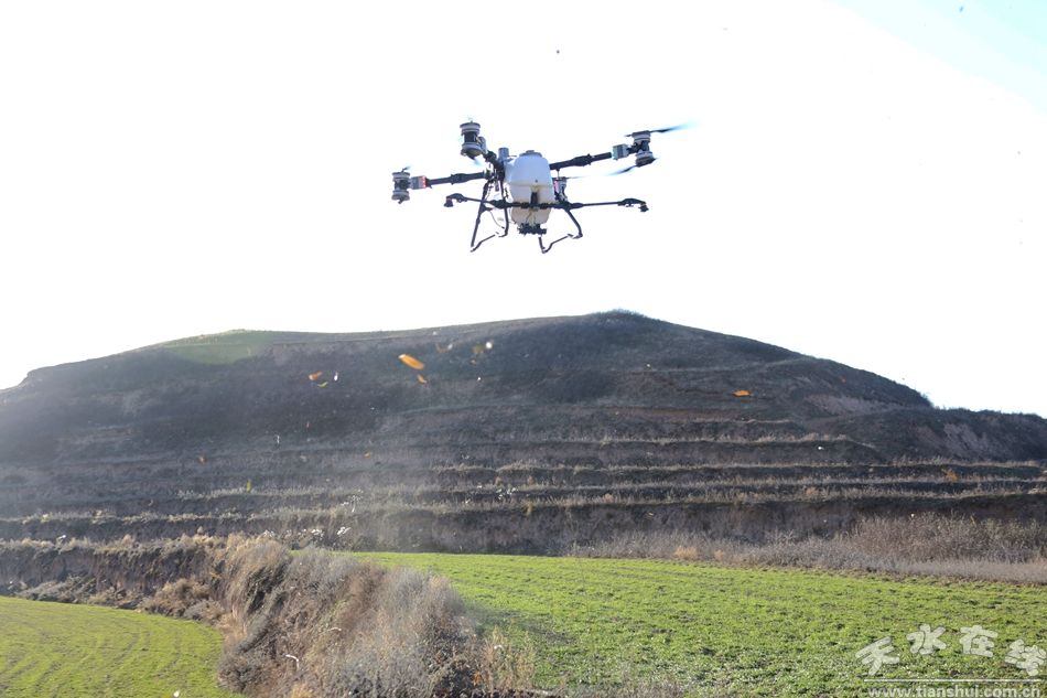 初冬時節(jié),來到清水縣松樹鎮(zhèn)下曹村前灣梁良繁基地,植保無人機正沿著預定航線進行飛防作業(yè),精準均勻地噴灑著藥劑。這里是清水縣10萬畝良種繁育基地的重要組成部分,每一株麥苗都承載著“農(nóng)業(yè)芯片”的重要使命。