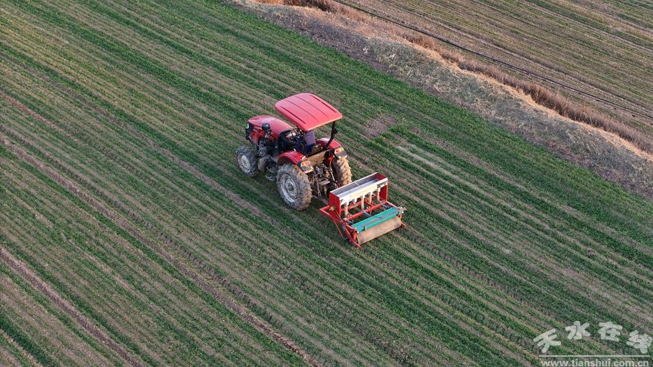 與此同時,在王河鎮(zhèn)的南灣梁小麥繁育點,拖拉機正牽引著鎮(zhèn)壓器進行機械化作業(yè),機械駛過之處,土壤變得緊實平整,為麥苗安全越冬筑起堅實屏障。