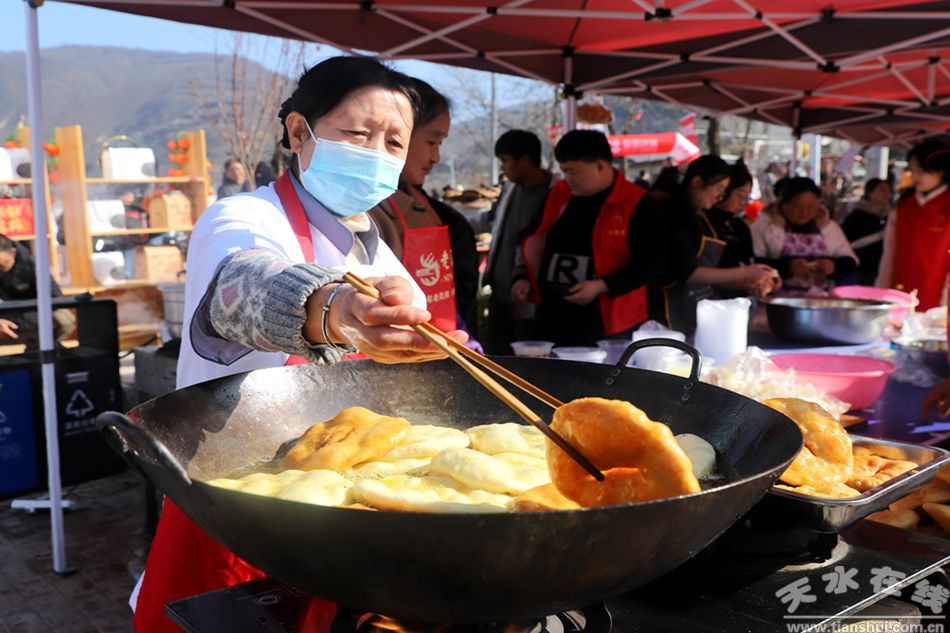 美食集會里,新鮮制成的柿餅,冒著熱氣的扁食飄香四溢,還有清水面皮。麻腐餅、炸油餅等本地特色美食同臺亮相。游客穿梭在攤位間,或細(xì)細(xì)品嘗,或打包帶走,在舌尖上感受清水的甜蜜與煙火氣。村民們現(xiàn)場制作的傳統(tǒng)柿制品,更是讓游客領(lǐng)略到鄉(xiāng)村食材的本真風(fēng)味。