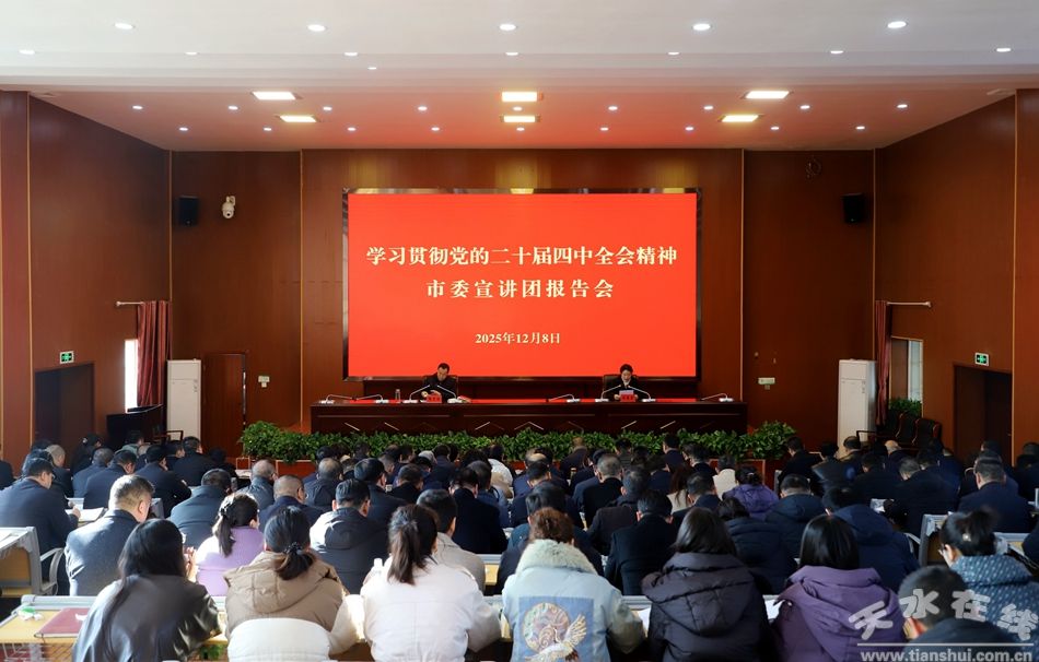按照市委統(tǒng)一安排,12月8日上午,學(xué)習(xí)貫徹黨的二十屆四中全會(huì)精神市委宣講團(tuán)在清水縣舉行宣講報(bào)告會(huì)。市委宣講團(tuán)成員、市生態(tài)環(huán)境局局長張育明作專題輔導(dǎo),縣委書記李菊霞主持并講話,縣領(lǐng)導(dǎo)王濤、馬小平、蔡俊杰等出席。