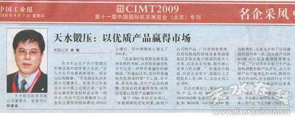 據(jù)悉,在本次展會(huì)的表彰活動(dòng),天水鍛壓被評(píng)為2008年度機(jī)床工具行業(yè)“自主創(chuàng)新十佳企業(yè)”。
