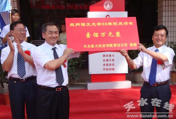 2007年10月,星火機(jī)床公司為支持西部教育事業(yè)發(fā)展慷慨解囊,一舉捐款100萬元人民幣,在全社會激起了巨大反響。此次,又蘭州理工大學(xué)捐款100萬元,支持西部教育事業(yè),體現(xiàn)了星火機(jī)床公司一貫重視教育,捐資助學(xué),為祖國培養(yǎng)人才的優(yōu)良傳統(tǒng)。
