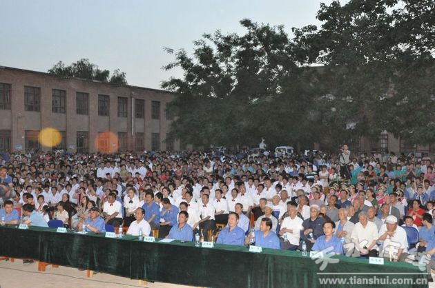 參加演唱會的星火機床公司機關(guān)處室、分廠的十幾個代表隊及星火機床公司子公司--星火機械制造公司的隊員們,身著盛裝,懷著興奮的心情來到指定地點;上千名熱情的觀眾扶老攜幼,擠滿了學(xué)校操場。寬大的舞臺上,鮮紅的黨旗與金黃色鐮刀和錘頭組成的黨徽圖案交相輝映,熠熠生輝。