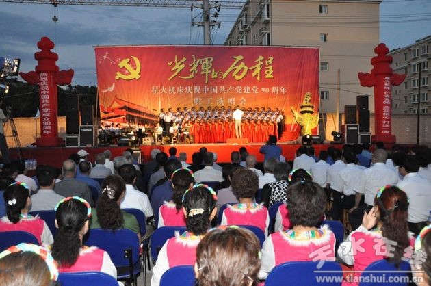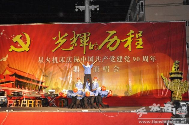 晚八點鐘,演唱會正式開始。星火機床公司工會主席于廷義代表公司講話。他說,今天我們在這里隆重舉行紀念建黨90周年演唱會,紀念中國共產(chǎn)黨成立90周年,回顧黨的歷史,緬懷黨的豐功偉績,用歌聲表達我們黨員干部和廣大群眾對黨的熱愛,通過歌聲展現(xiàn)星火廣大黨員群眾的精神風(fēng)貌,激勵黨員,鼓舞員工,為星火的發(fā)展再立新功。