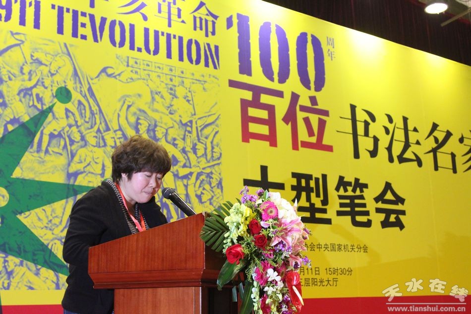 12月11日下午由甘肅東煜集團(tuán)、中國(guó)書法家協(xié)會(huì)、中央國(guó)家機(jī)關(guān)分會(huì)聯(lián)袂主辦的“紀(jì)念辛亥革命一百周年著名書法家大型筆會(huì)活動(dòng)”在北京隆重舉行,參加本次活動(dòng)的領(lǐng)導(dǎo)和書法家有:中國(guó)書協(xié)主席張海,中國(guó)書協(xié)名譽(yù)主席沈鵬、中國(guó)書法文化研究院名譽(yù)院長(zhǎng)歐陽(yáng)中石、中國(guó)書協(xié)副主席李鐸,中國(guó)文聯(lián)副主席段成桂,中國(guó)作協(xié)副主席廖奔,中國(guó)書法家協(xié)會(huì)顧問(wèn)佟韋、張飆,中國(guó)書法家協(xié)會(huì)分黨組書記、駐會(huì)副主席趙長(zhǎng)青,副主席蘇士澍,中國(guó)書法家協(xié)會(huì)秘書長(zhǎng)陳洪武和著名書法家郭子緒、王友誼、朱守道、張坤山、高慶春、李松、張銅彥、于恩東、白景峰、白銳、鄭曉華、王元軍等,甘肅東煜集團(tuán)董事長(zhǎng)李牧恒、監(jiān)事會(huì)主席李蘭以及新聞媒體的朋友一百多人參加了此次活動(dòng)。
