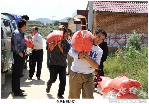 一邊是在寒暄,一邊已經(jīng)把一袋袋化肥扛進了農(nóng)家,沒有太多的客套,更沒有過分的豪言壯語,一股股暖流涌上了“親人”心頭……