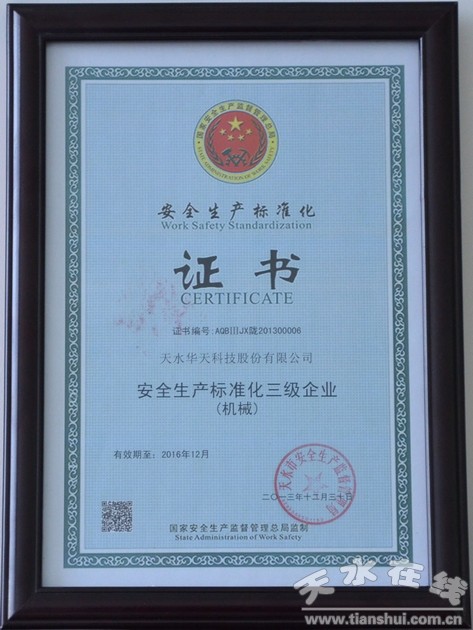 3月7日召開的全市工貿(mào)行業(yè)安全監(jiān)管工作會議上,天水華天科技股份有限公司等45戶企業(yè)獲得安全生產(chǎn)標準化三級企業(yè)資質(zhì)和證書。