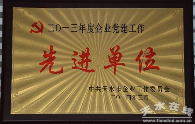 會上表彰了2013年度企業(yè)黨建工作先進(jìn)單位,天水華天電子集團(tuán)黨委獲得了2013年度企業(yè)黨建工作先進(jìn)單位。