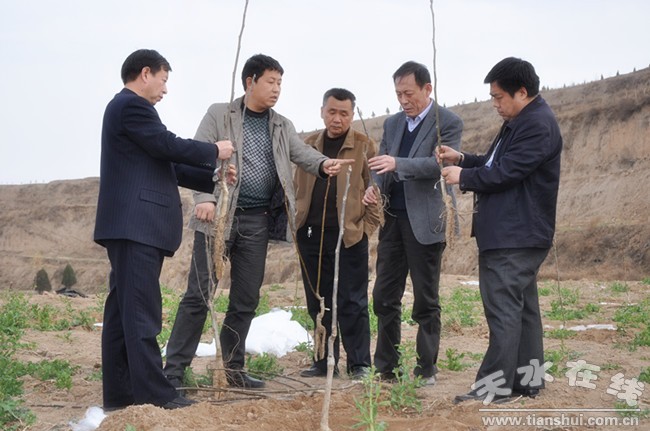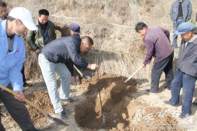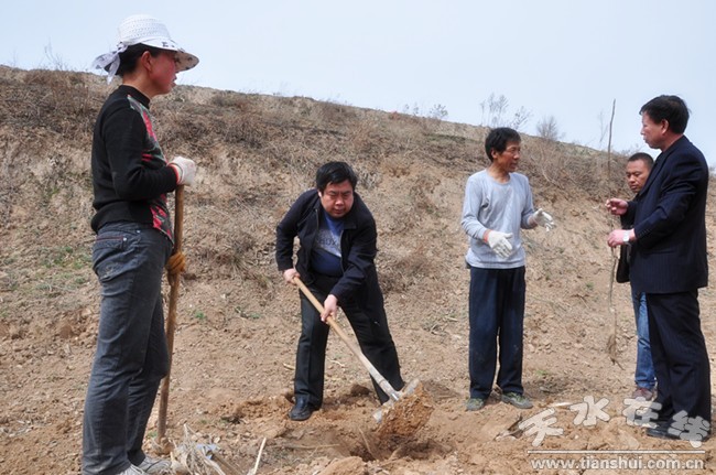 3月30日上午,省工信委副主任朱維繁帶領(lǐng)電子信息與軟件服務(wù)處處長(zhǎng)曹學(xué)義、信息安全與軍工保密處處長(zhǎng)陳忠等相關(guān)處室負(fù)責(zé)人,冒著蒙蒙細(xì)雨,赴 “雙聯(lián)”點(diǎn)麥積區(qū)新陽(yáng)鎮(zhèn)郭王—蒲池兩村檢查核桃苗木栽植情況,并親自參加植樹(shù)。