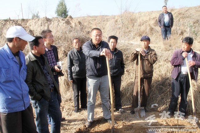 郭王-蒲池核桃建園項(xiàng)目確定后,2014年3月5日,二一三大隊(duì)大隊(duì)長(zhǎng)王正堂召開(kāi)“雙聯(lián)“工作小組會(huì)議,研究落實(shí)項(xiàng)目實(shí)施情況。他指出:2014年是“雙聯(lián)”工作向縱深發(fā)展的關(guān)鍵一年,省委、省工信委要求以項(xiàng)目帶動(dòng)扶貧,進(jìn)一步加強(qiáng)“雙聯(lián)”工作。今年“雙聯(lián)”工作重點(diǎn)要落實(shí)在核桃建園項(xiàng)目上,要想方設(shè)法籌集資金,盡快拿出意見(jiàn),確定目標(biāo)任務(wù)。按照上級(jí)領(lǐng)導(dǎo)的要求,將任務(wù)落實(shí)到村,落實(shí)到戶,與農(nóng)戶簽訂責(zé)任書,按苗木成活率形成獎(jiǎng)勵(lì)機(jī)制。二一三“雙聯(lián)”工作小組要與鎮(zhèn)、村干部密切配合,保證項(xiàng)目每個(gè)環(huán)節(jié)的順利銜接。他強(qiáng)調(diào),要針對(duì)核桃建園項(xiàng)目,形成規(guī)章制度。要做好陣地建設(shè),利用蒲池村現(xiàn)有的空地,建立“雙聯(lián)”工作站,負(fù)責(zé)組織、協(xié)調(diào)項(xiàng)目實(shí)施工作。