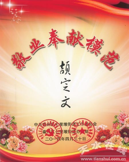 榮獲轄區(qū)敬業(yè)奉獻(xiàn)模范榮譽(yù)稱號