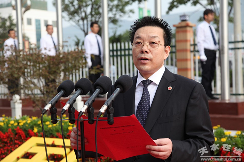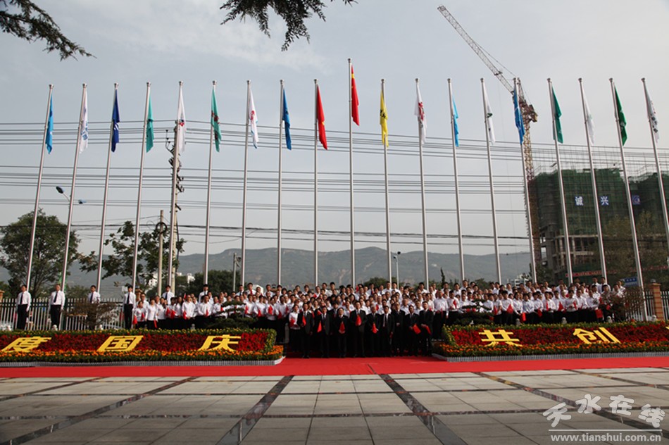 簡(jiǎn)單而隆重的升旗儀式在全場(chǎng)大合唱《昊峰之歌》的嘹亮歌聲中結(jié)束。集團(tuán)公司總裁助理郭成主持升旗儀式,集團(tuán)公司副總裁陳增寬、李旭茂,工會(huì)主席、人力資源總監(jiān)陸宗旺、財(cái)務(wù)總監(jiān)張玉崗以及駐秦州、麥積兩區(qū)子公司總經(jīng)理參加了儀式。